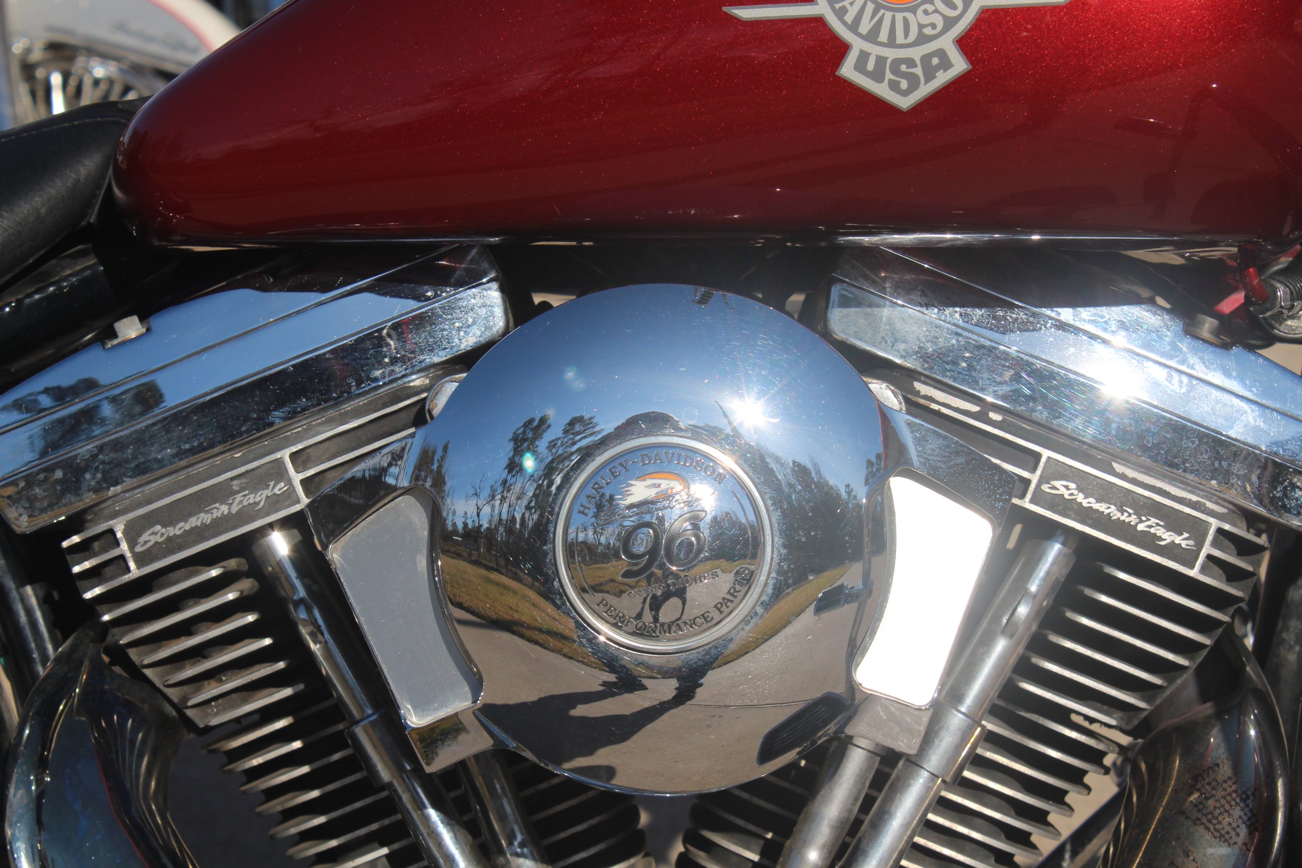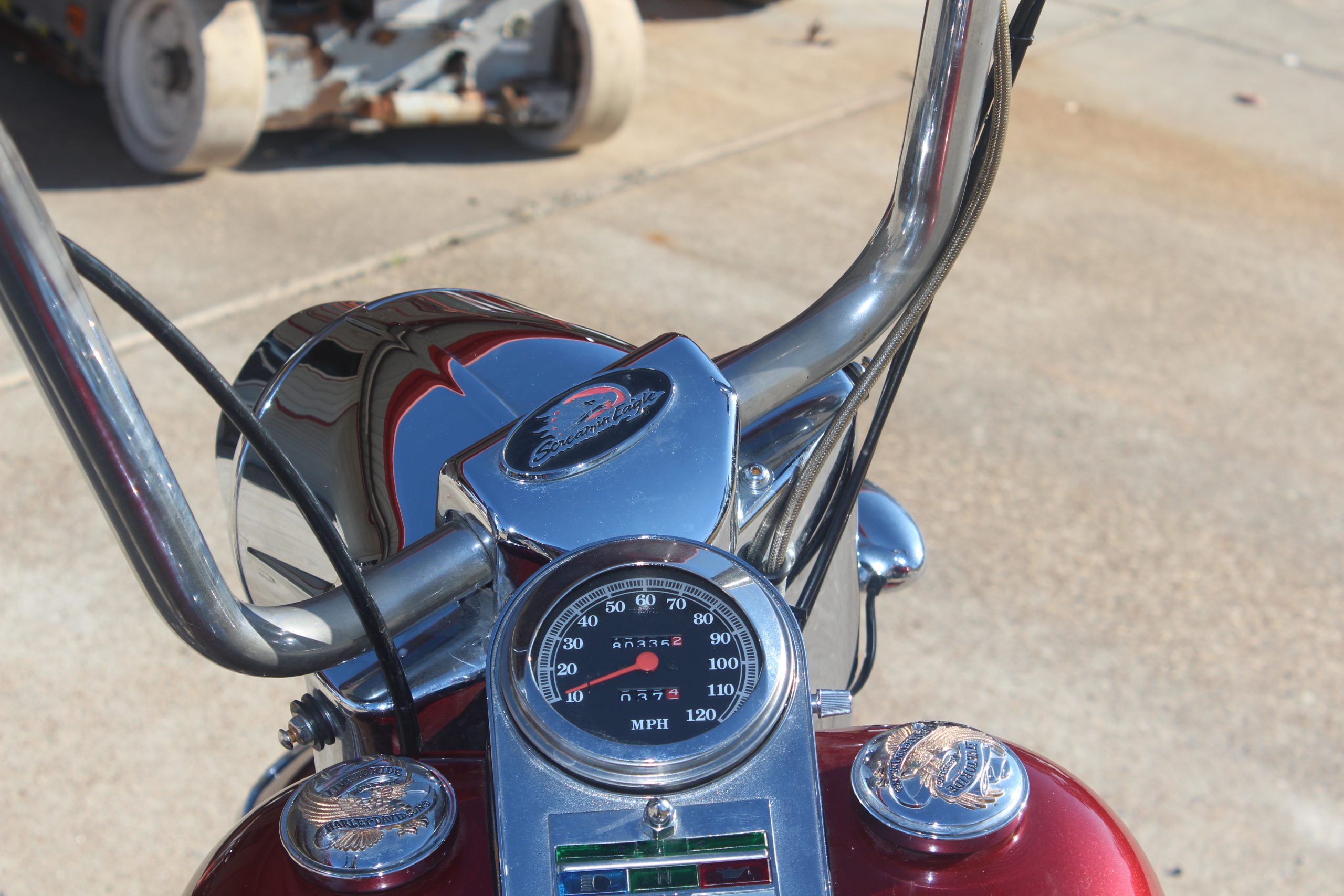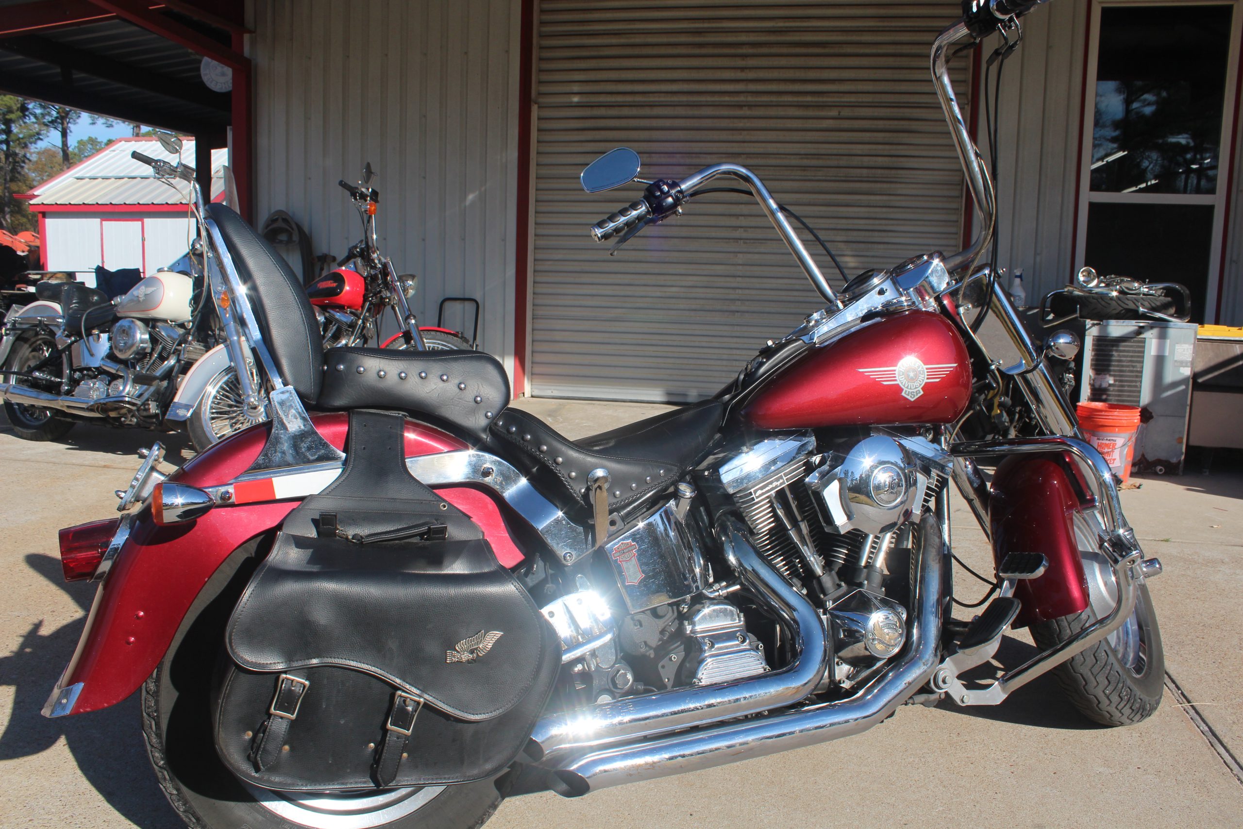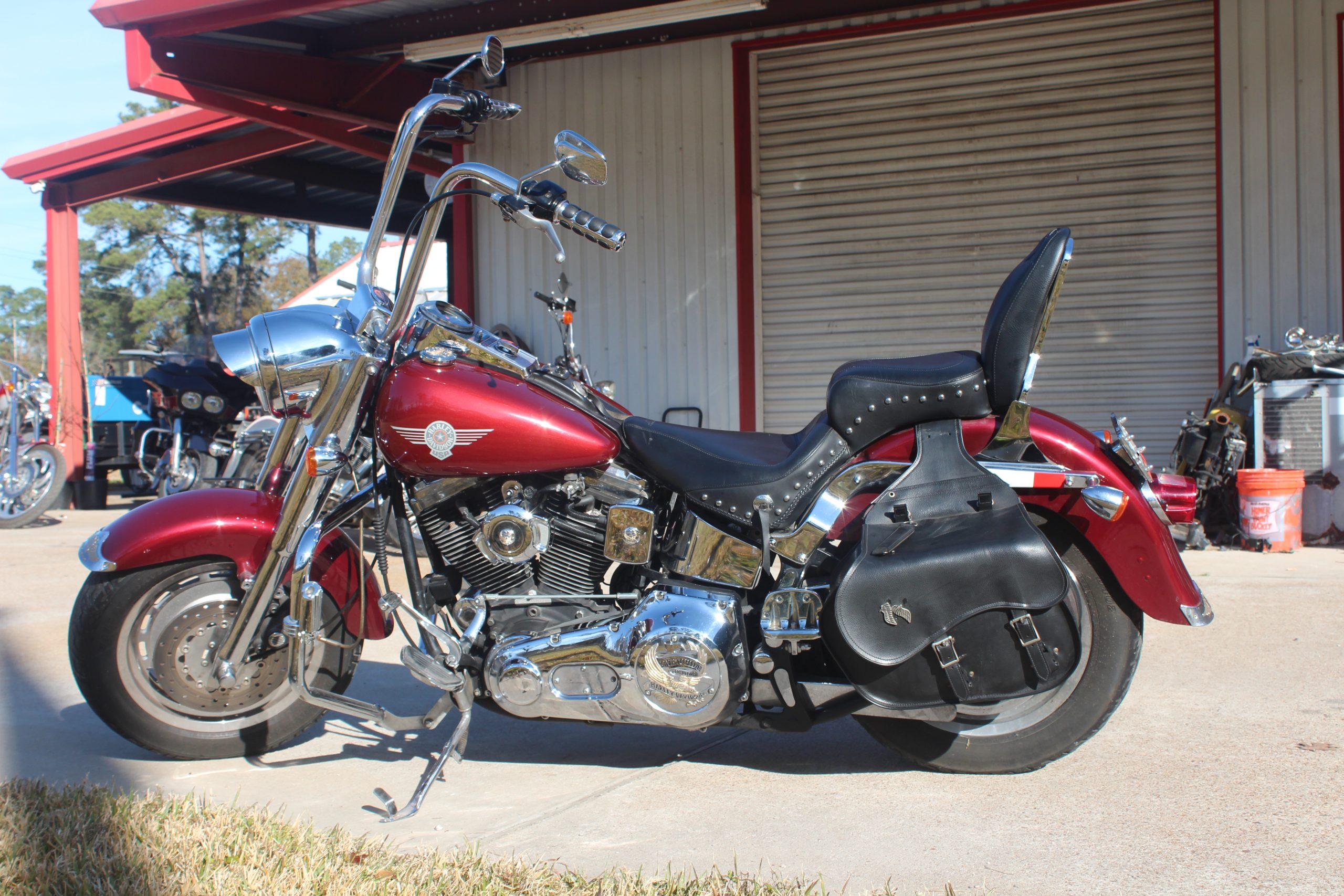 The 1998 Harley Davidson FLSTF Fat Boy comes with features such as solid-disc, cast-aluminium wheels, a pea-shooter, chromed, dual exhaust system, a dual seat, a chromed, round headlight, a blacked-out, steel frame, wide, beach handlebars, a 39mm, chromed, telescopic front fork coupled to dual hidden shocks in the rear, a hardtail look plus chrome and black accents on its engine.